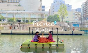 「こたつ水上ピクニック」とは、川に浮かぶボートの上にこたつを乗せて、ぷかぷか浮かびながら暖かくピクニックが楽しめる不思議体験です。