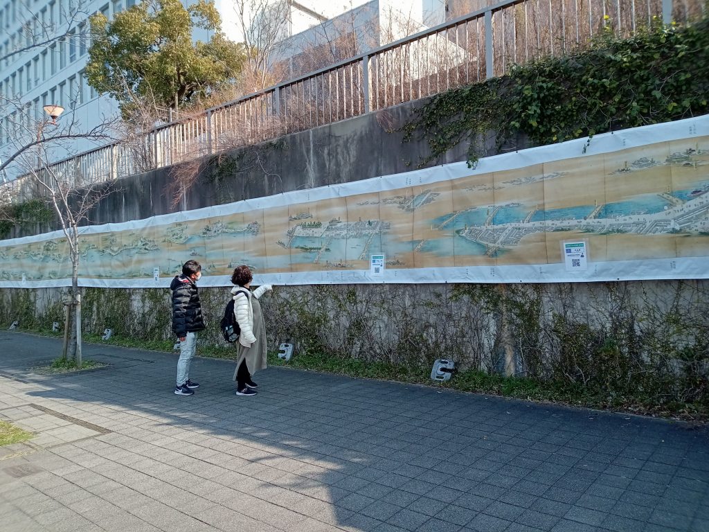 また、3月28日(土)から4月12日(日)までは、八軒家浜遊歩道で、「水の都のお花見まつり」を開催します。大川さくらクルーズに来られた方々に陸上からもお花見を楽しんでいただけるよう、「淀川絵巻」タペストリーの展示や、野点傘と長椅子を設置してくつろぎの空間を創出します。