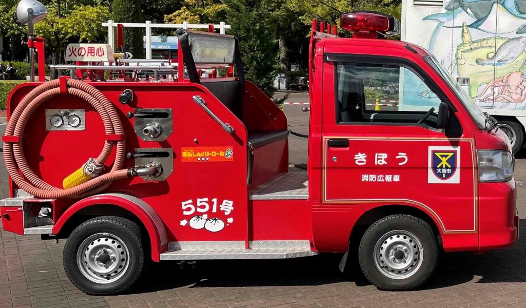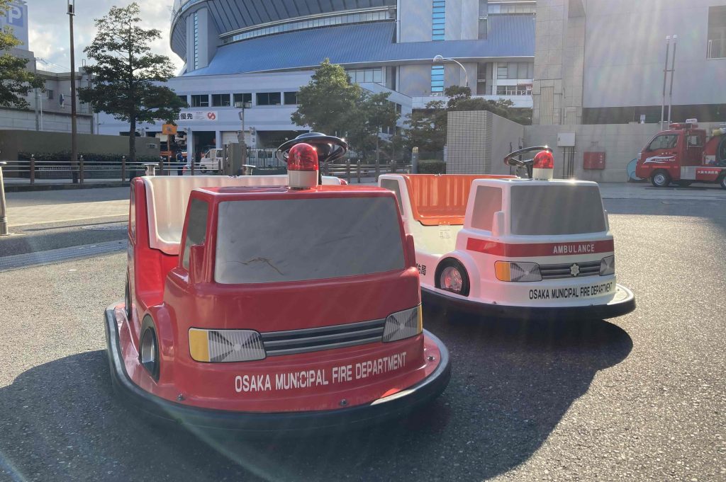 大阪市消防局による防火防災キャンペーンとして、起震車で震度7の地震を体験したり、ミニ消防車に乗って写真撮影ができます。消防車型ゴーカートでも遊べます。