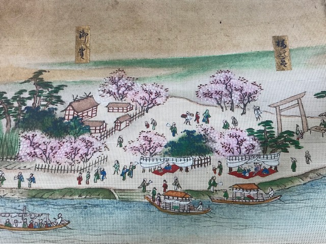 淀川絵巻タペストリー      淀川絵巻(一部分)       野点傘と長椅子
